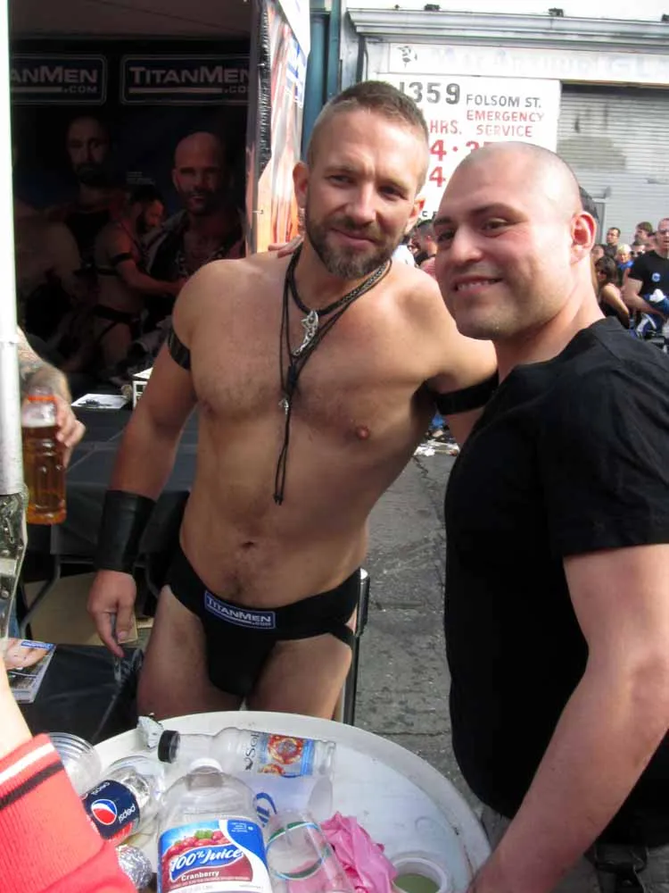 Rain threatened to dampen the festivities, but by mid-afternoon the sun was out and so were half a million exhibitionists and voyeurs. Two live entertainment stages at either end bookmarked five big city blocks of beer, food, leather, and bondage gear vendors. A line-up of six DJ's kept the 10th street Gold's Gym entertainment block dancing from 11am to 6pm. The Steamworks Baths' naked twister game was popular, as were the Titan, Raging Stallion, and Man's Hands booths, where the stars were on hand to sign autographs and take pictures with fans. Spanking and whipping booths were busy and the ladies had a special place to hang at the Venus Playground. By the end of the day, the crowds thinned a bit and became even more frisky, before heading to local watering holes, one of the big after parties, or perhaps a private dungeon.